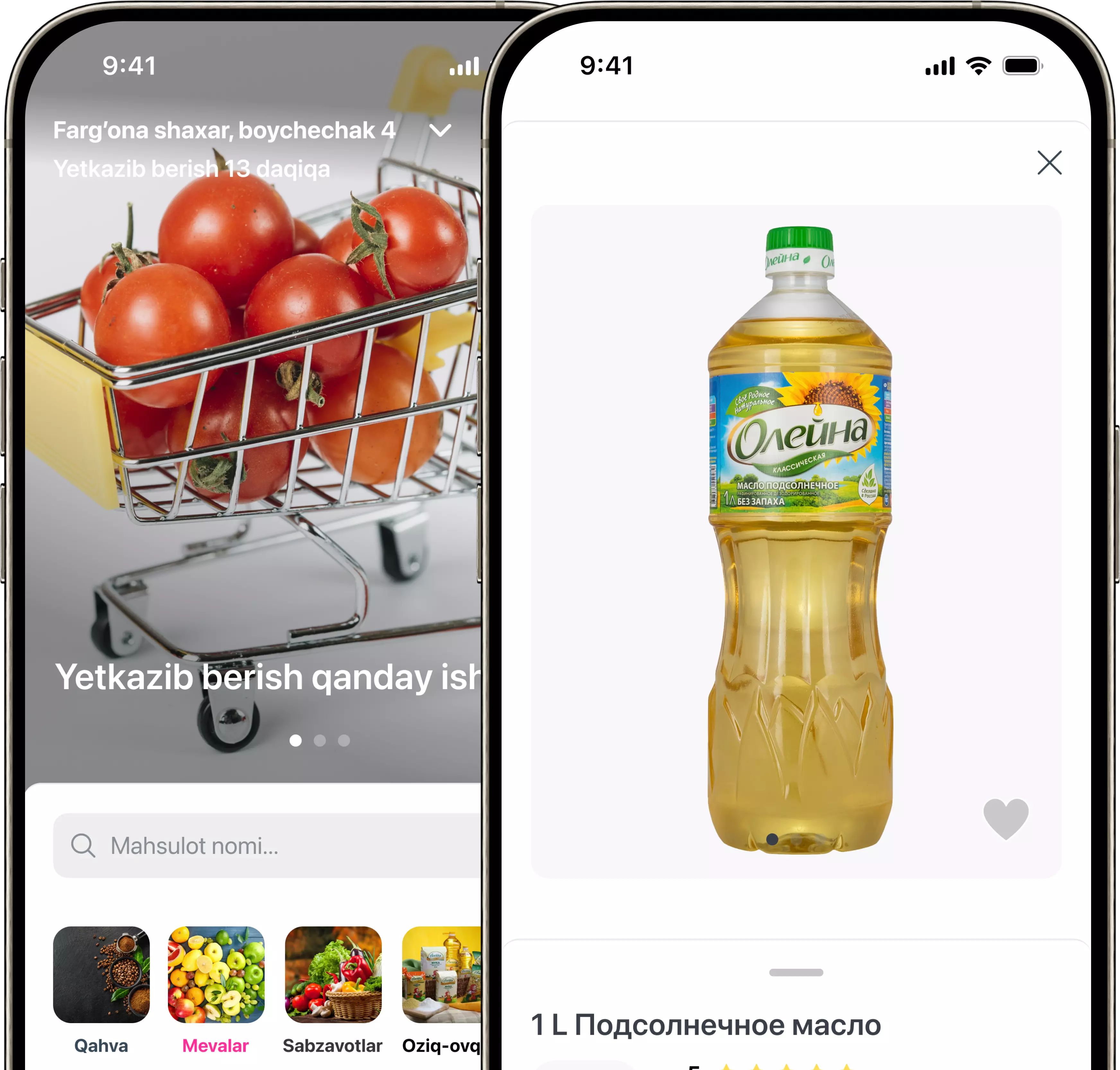 Juda qulay online bozor bo’libdi, hozirgina buyurtma berdim, kuryer juda tez yetkazib berdi, 2-3ta mahsulot uchun atayin bozorga borishni hojati ham yo’q ekan, dastur muallifiga katta rahmat shunday qulay platforma ishlab chiqganiga.