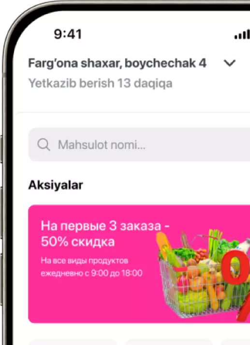 Bizning mobile ilovamizda doimo chegirmalar yangilanib turadi, va siz chegirma boshlanishi bilan bildirishnoma orqali xabar olib turasiz!